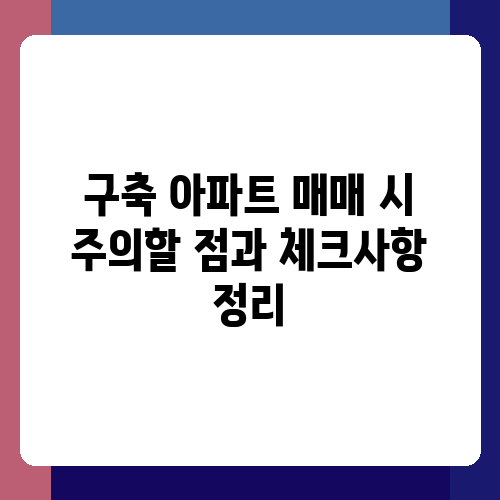 아파트 구매는 인생에서 가장 큰 결정 중 하나입니다. 특히 구축 아파트는 신축 아파트와 달리 여러 가지 확인해야 할 사항들이 많아 더욱 신중해야 합니다. 꼼꼼하게 체크하지 않으면 예상치 못한 문제에 직면할 수 있고, 돈을 낭비하거나 심지어 큰 손해를 볼 수도 있거든요. 그래서 오늘은 구축 아파트 매매 시 주의해야 할 점과 꼭 체크해야 할 사항들을 알려드리고자 합니다. 함께 꼼꼼하게 살펴보고 안전하고 현명한 구매 결정을 내리도록 해요!