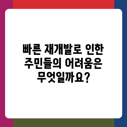 빠른 재개발로 인한 주민들의 어려움은 무엇일까요?