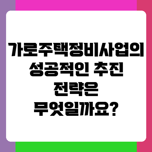 가로주택정비사업의 성공적인 추진 전략은 무엇일까요?