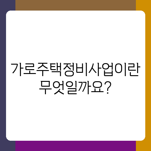 가로주택정비사업이란 무엇일까요?