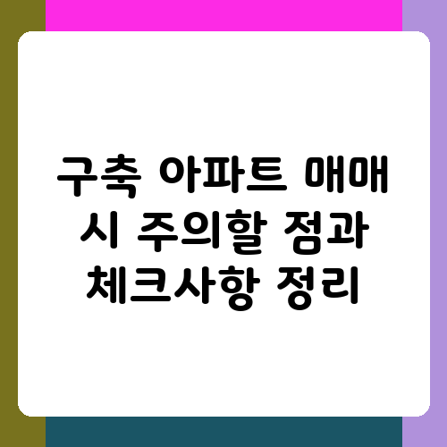 구축 아파트 매매는 신중한 결정이 필요합니다. 위에서 언급한 내용들을 꼼꼼히 체크하고, 필요하다면 전문가의 도움을 받아 안전하고 현명한 거래를 하세요. 새로운 보금자리에서 행복한 시간을 보내시길 바랍니다. 궁금한 점이 있다면 언제든지 질문해주세요!