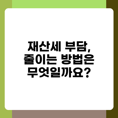 재산세 부담, 줄이는 방법은 무엇일까요?